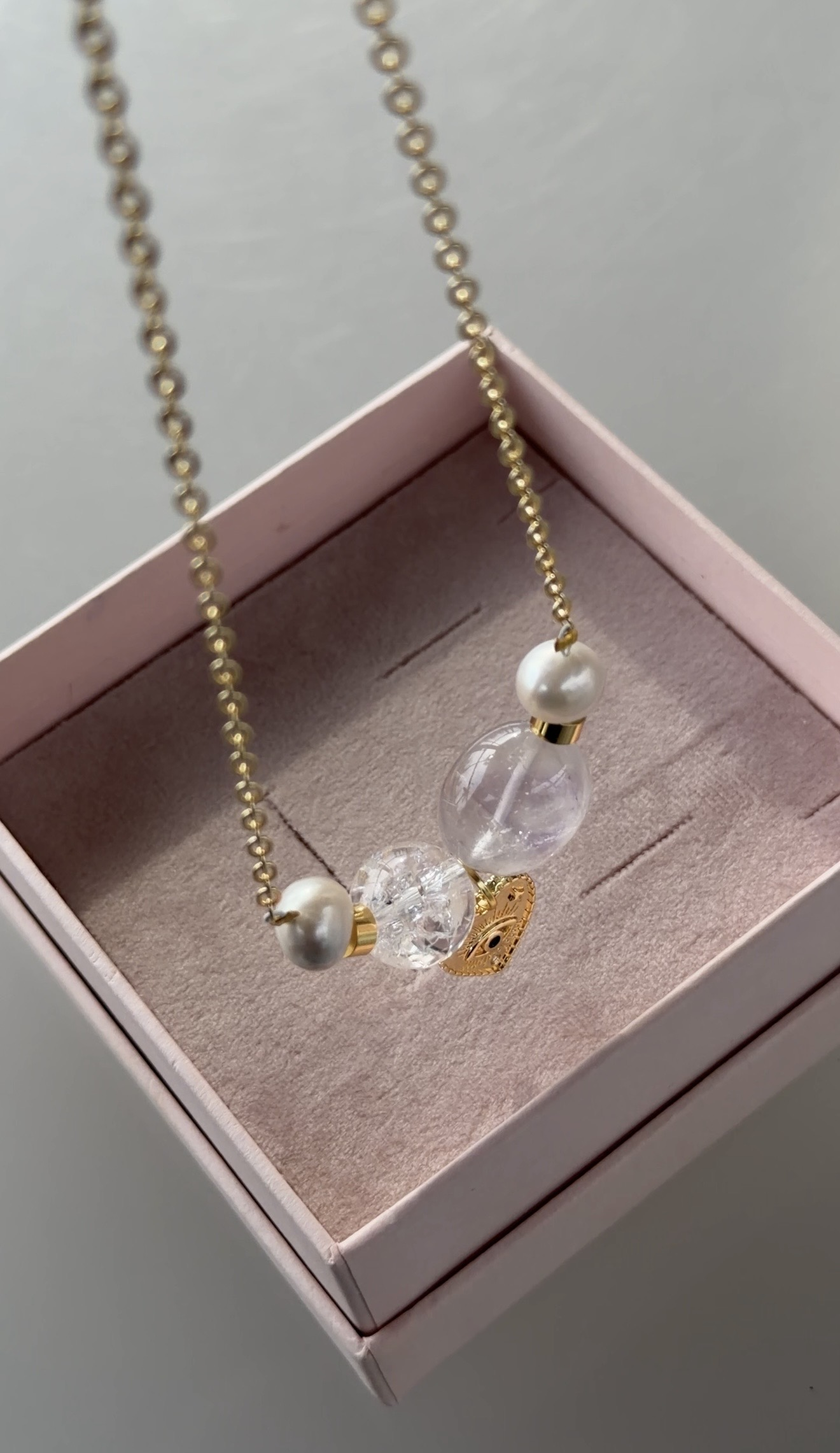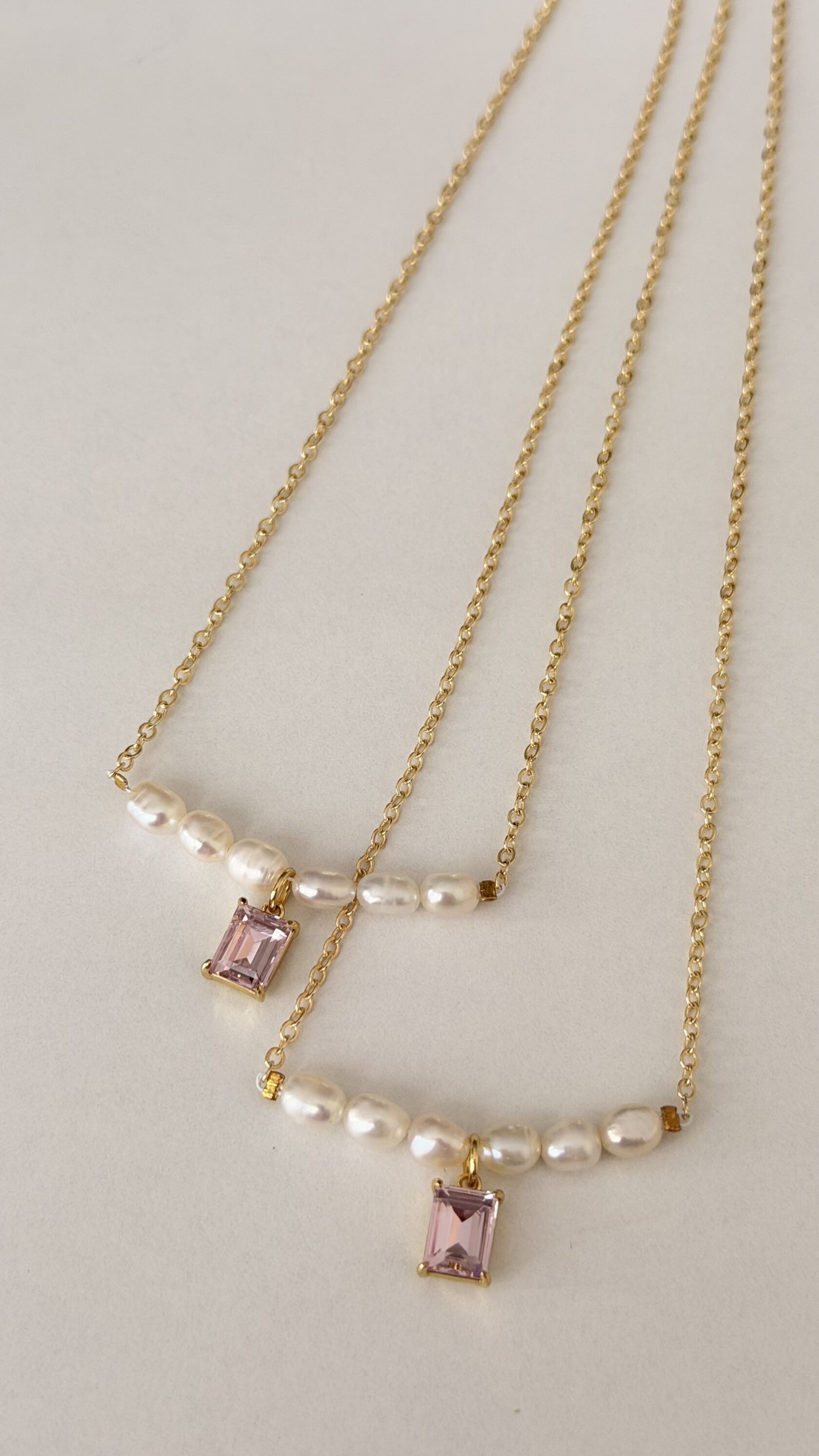 Malzeme: Altın kaplama paslanmaz çelik Taşlar: Doğal inci, Necef taşı ve doğal ametist Üretim: Tamamen el işçiliği ile hazırlanmıştır.