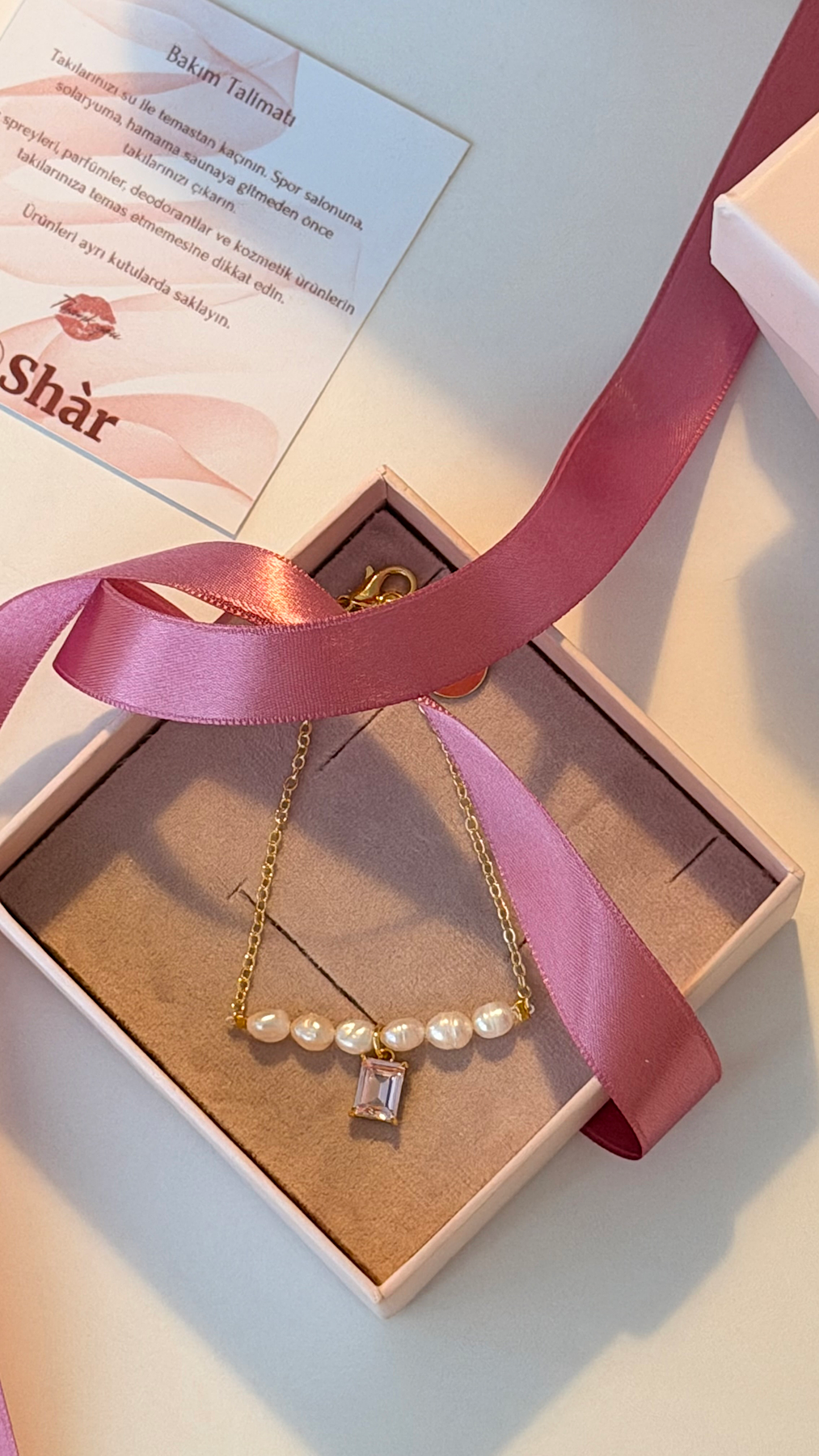 Bakım: Kolye üzerindeki kaplamanın ve doğal incilerin uzun ömürlü olması için parfüm, krem, alkol ve kimyasal ürünlerle temasından kaçınılması önerilir. Kullanmadığınız zamanlarda kuru ve kapalı bir kutuda saklayınız. Su ile temas ettirmemeye özen gösteriniz.