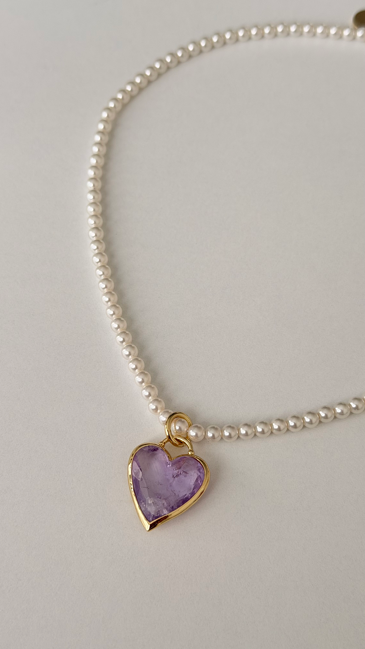 Detaylar: • El yapımı özel tasarım • Taşlar: Mallorca incisi & kalp formunda doğal ametist • Kaplama: Altın kaplama • Hafif ve konforlu kullanım